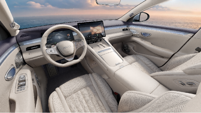 继3月5日外观首秀,海豹08于本届车展首次向公众开放实车内饰品鉴。新车座舱基于海洋美学2.0设计打造,以破晓海平线为视觉主轴,视野开阔、空间越级。曦光米配色搭配127色漫反射氛围灯,营造温柔与高级质感。内饰采用大面积软包,甄选百万豪车与高奢珠宝同源的光韵贝母饰板,并搭配大师级调香车载香氛,彰显精致格调。海豹08配有同级领先的越级大空间,得房率高达84.4%。前排双零重力座椅、后排电动腿托,支持全车座椅通风加热按摩,配合C柱无遮挡设计,带来头等舱级的松弛体验。加之迎宾光毯、智能电吸门、全车双层隔音玻璃、后排雪橇洞等越级配置,让日常用车更具仪式感。新车精准贴合新生代家庭对舒适与品质出行格调的核心诉求,为用户带来高级感、精致感、松弛感、仪式感的移动奢享空间。